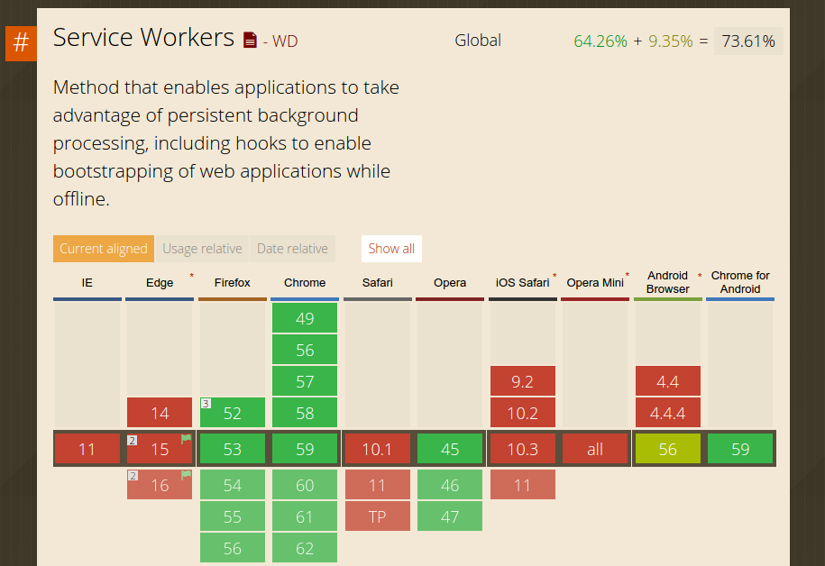 Of course, service worker isn’s just about caching, it enables for app-link features such as push notification, background sync and install to homescreen that will continue to fill the gap between native apps and web apps without the need for software like Cordova and PhoneGap.