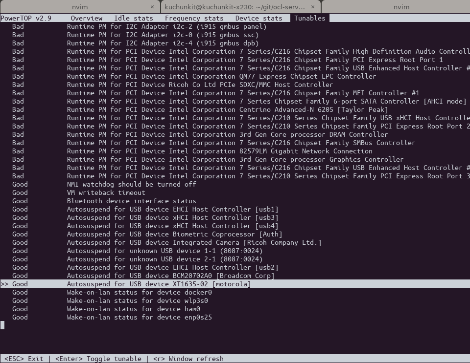 in order to save power. So I typed sudo powertop and found the one