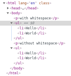 What makes the matter worse, if you open up Chrome’s DevTool and try to inspect the two elements, DevTool’s prettifies the HTML code in DevTool, ending up not showing the difference between the original HTML code.